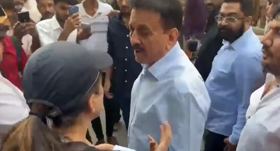Traffic chaos during the BJP's demonstration over the women's reservation bill in Mumbai’s Worli area prompted an irate woman to confront Maharashtra minister Girish Mahajan, blaming him for the snarls.